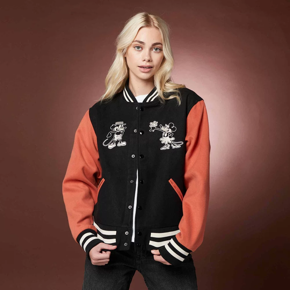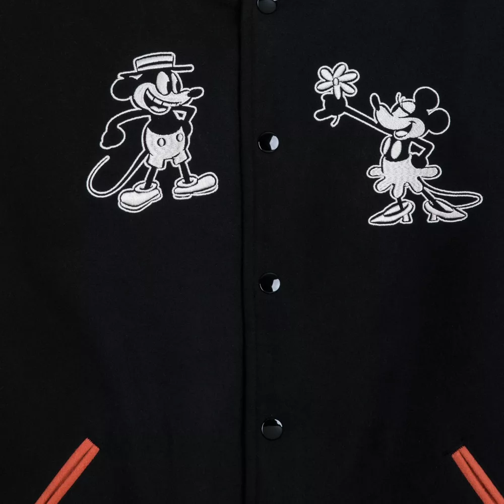 Team Mickey et Minnie pour toujours ! Ce blouson de style universitaire brodé à l’effigie de vos souris préférées vous aidera à relever n’importe quel défi. Un grand appliqué brodé du court-métrage de 1928, Mickey gaucho, décore l’arrière de la veste. Ce modèle emblématique comporte des manches contrastantes, des boutons pression sur l’avant et un col rayé. Vous vous sentirez au top avec !