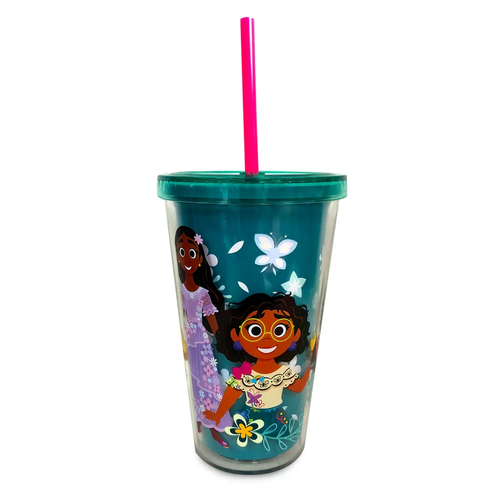 Inspiré d’Encanto : La Fantastique Famille Madrigal, ce gobelet à double paroi haut en couleur présente un motif personnages et une paille assortie réutilisable.