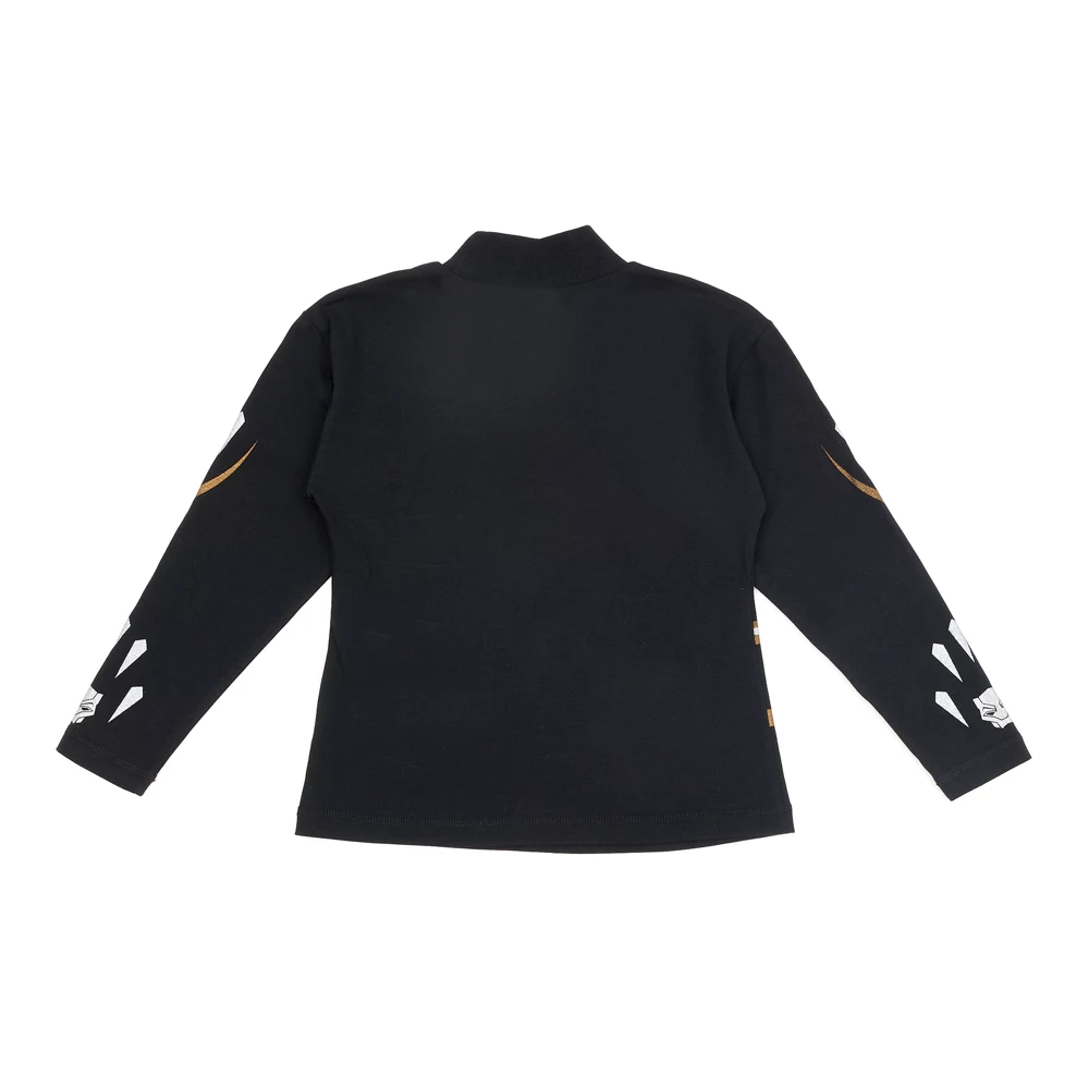 Les héros en herbe font régner l’ordre et la justice dans le quartier avec ce haut à manches longues Black Panther. Ce modèle à col montant est inspiré du costume emblématique de Black Panther et présente des détails métallisés.