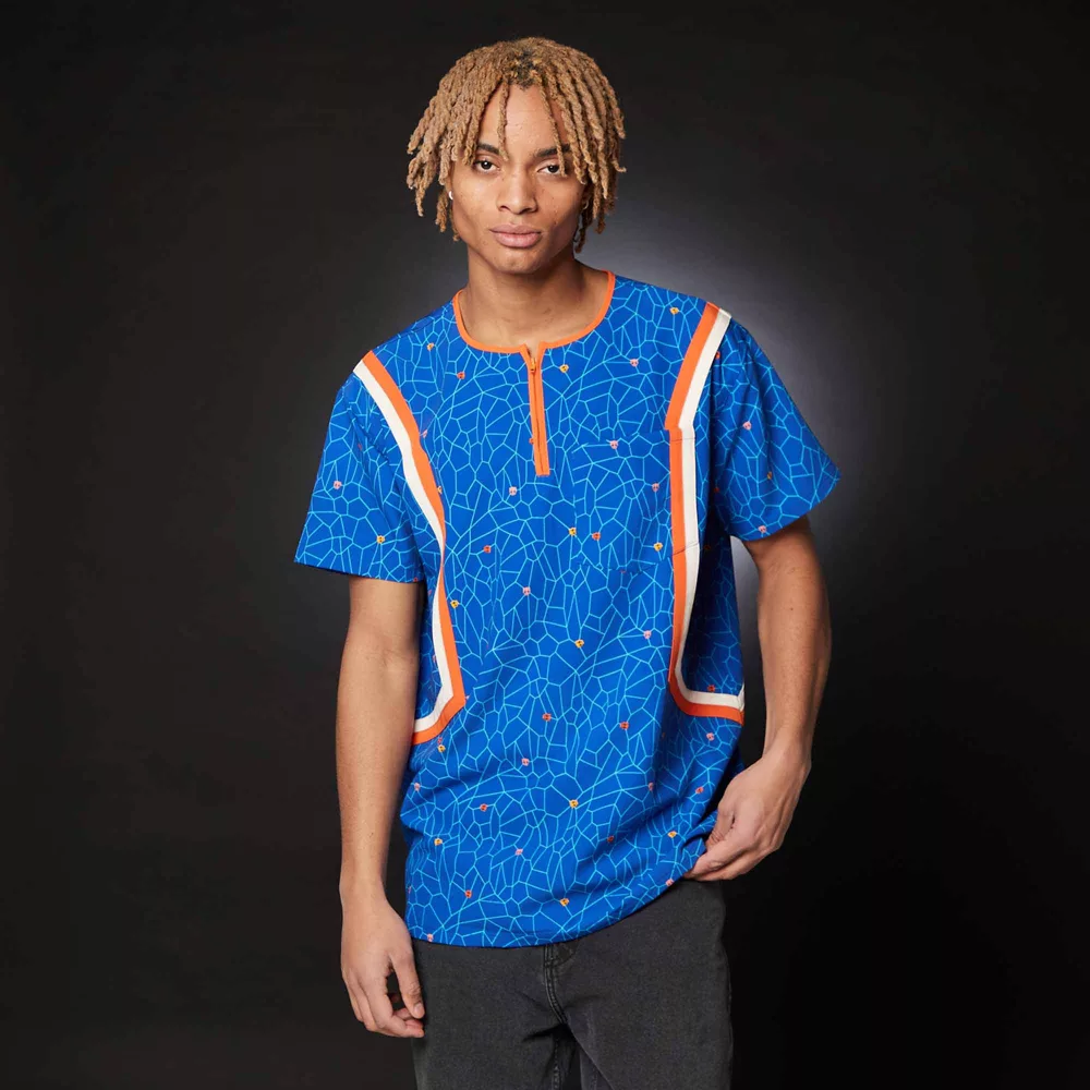 Affichez fièrement les couleurs du Wakanda avec ce haut Black Panther. Ce modèle unique présente une fermeture éclair à l’encolure et un imprimé intégral géométrique.