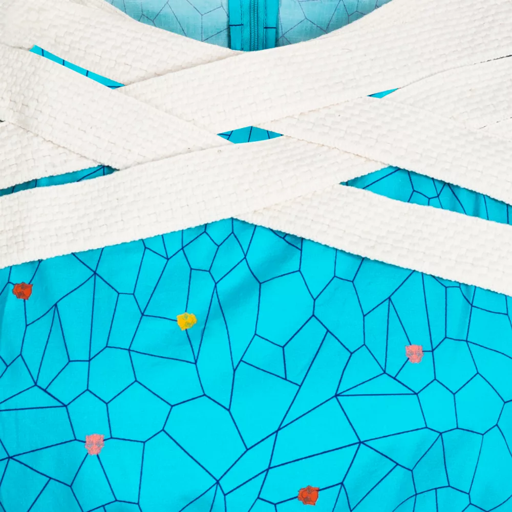 Ajoutez une touche royale à votre garde-robe avec ce haut Black Panther. Ce modèle présente un imprimé intégral discret et un noeud à la taille avec une inscription en wakanda, pour une tenue des plus charmantes.