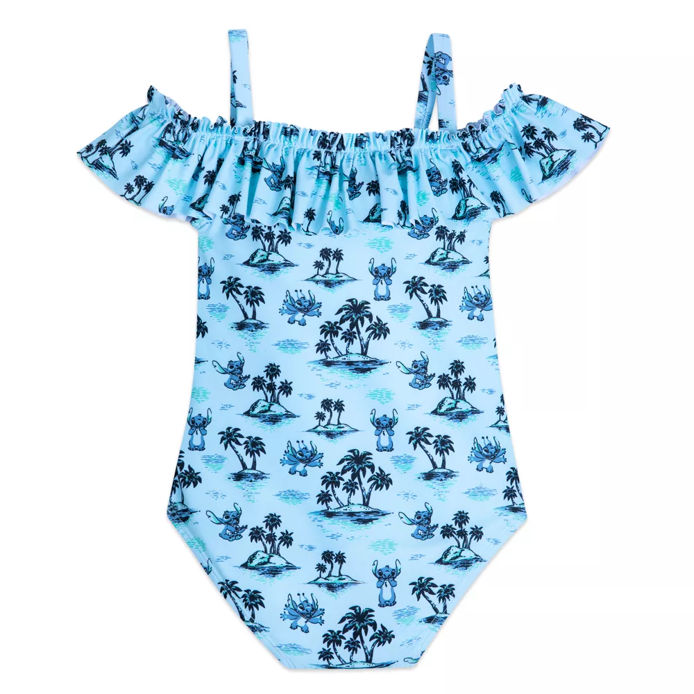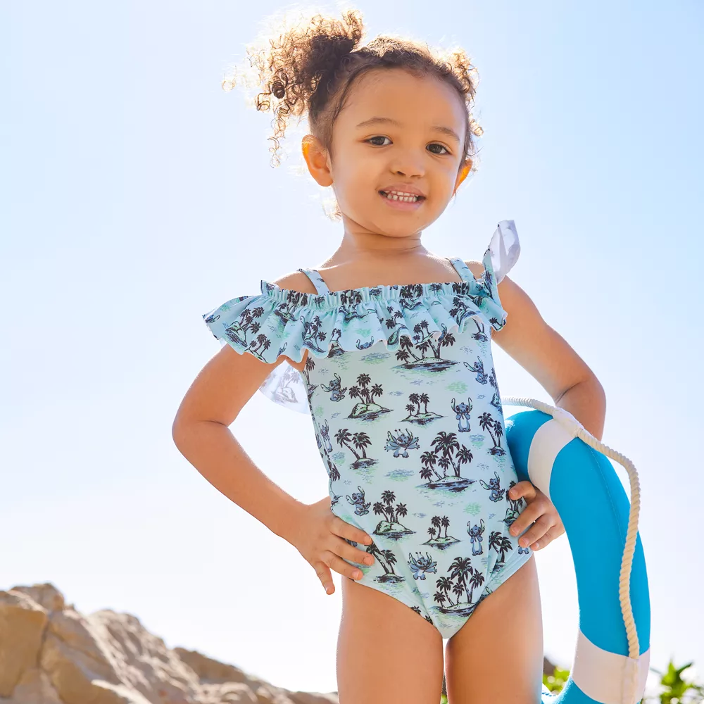 Votre enfant va vivre de belles aventures dans cet adorable maillot de bain Stitch. Ajoutez une touche hawaienne à la journée plage de votre bout de chou avec ce modèle à épaules dénudées, rehaussé de volants sur la bordure et d’un motif intégral à l’effigie du petit alien.