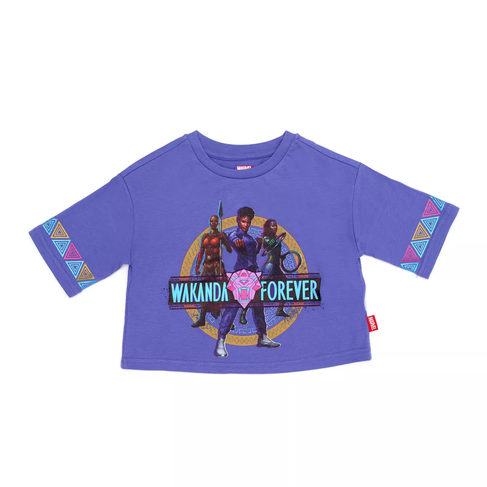 Dans ce t-shirt, votre enfant sera digne des Dora Milaje, un groupe de guerrières d’élite. Ce modèle court comprend un motif personnage classique et l’inscription « Wakanda Forever »