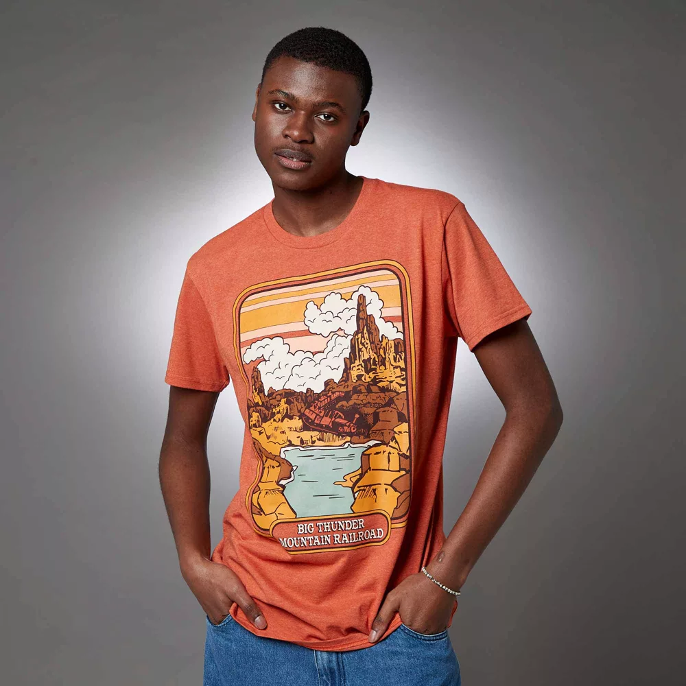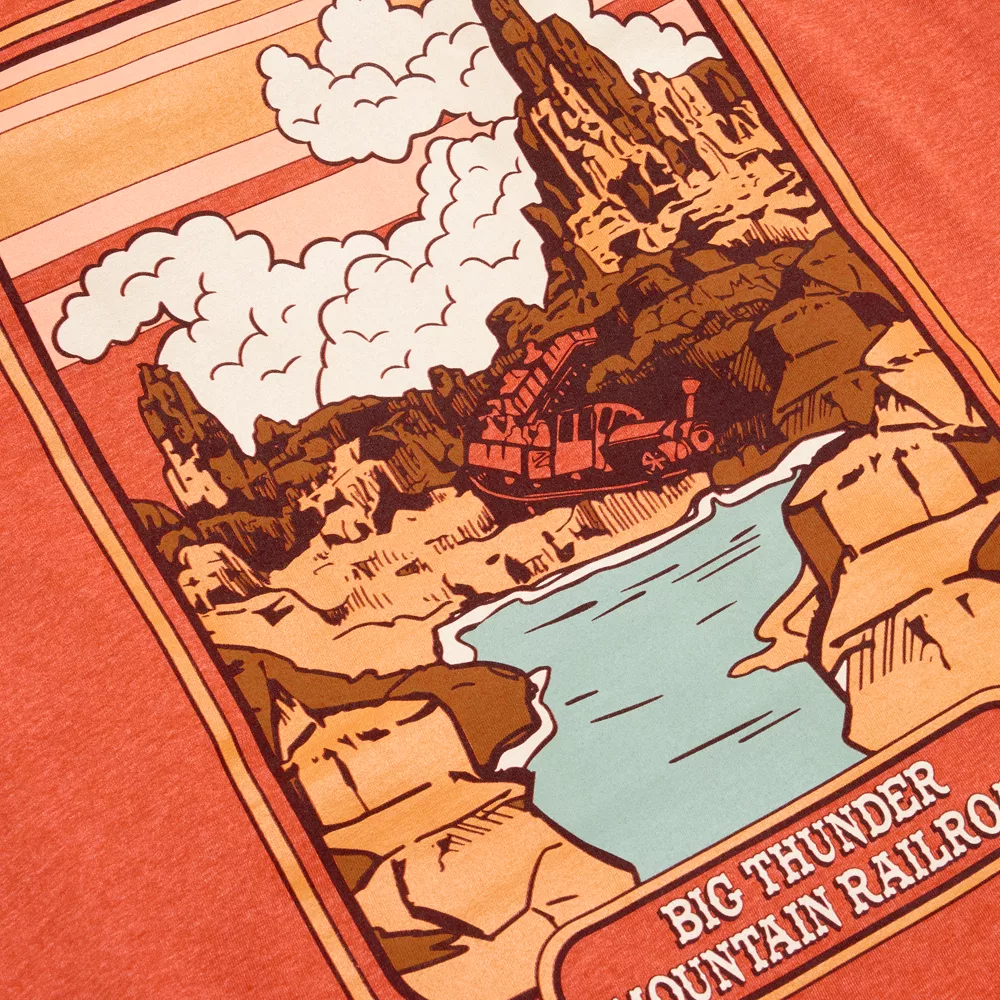 Cet incroyable t-shirt illustre à merveille l’attraction la plus sauvage du Far West : le Big Thunder Mountain ! Il est orné d’un motif coloré et d’inscriptions sur le devant. C’est le t-shirt parfait pour votre prochaine visite à Disneyland !