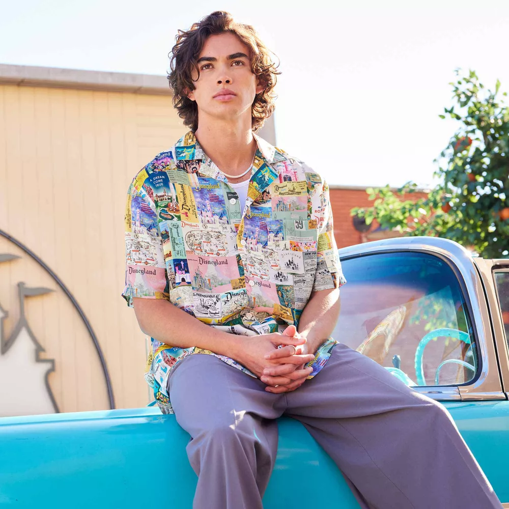 Cette chemise tissée kitsch comporte un col, une poche sur la poitrine et un motif composé d’un collage de visuels vintage de Disneyland. Adoptez la magie de Disney !