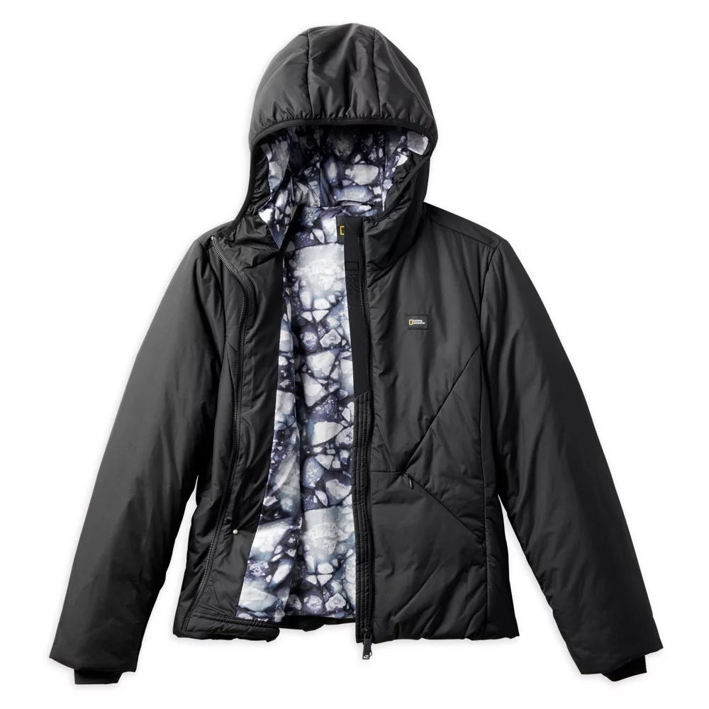 Cette veste à capuche National Geographic est noire à l’extérieure, avec une doublure colorée dont l’imprimé souligne la beauté des glaciers. Composé de matériaux recyclés, ce modèle aux manchettes intérieures avec ouverture pour le pouce ne passera pas inaperçu lors de vos prochaines aventures.