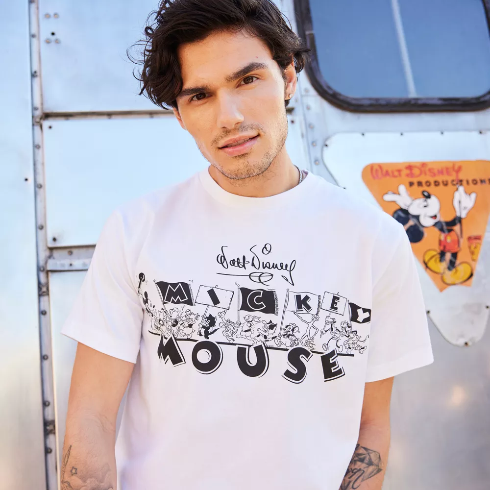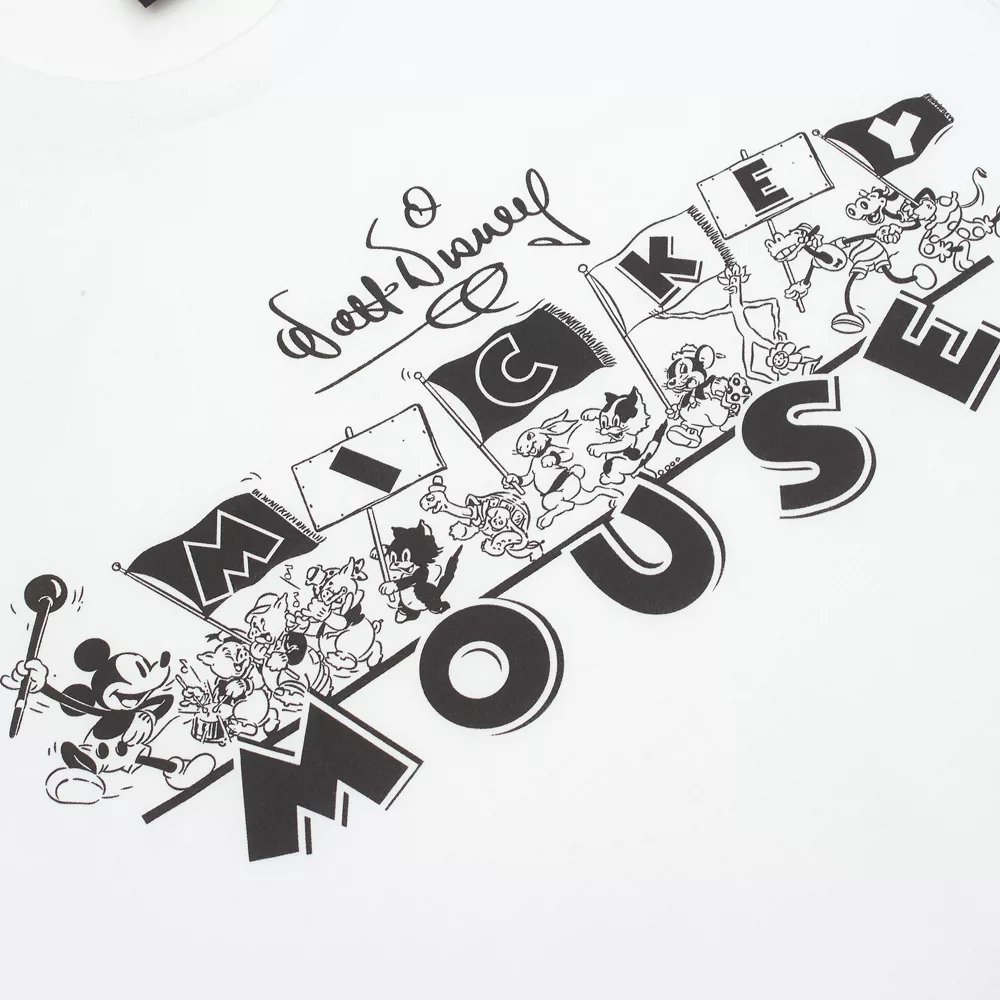Mickey mène la troupe de vos personnages Disney préférés des dessins animés des années 1930 Mickey Mouse et Silly Symphony sur le motif vintage de ce t-shirt en coton tout doux. Entrez dans la danse et égayez votre journée !